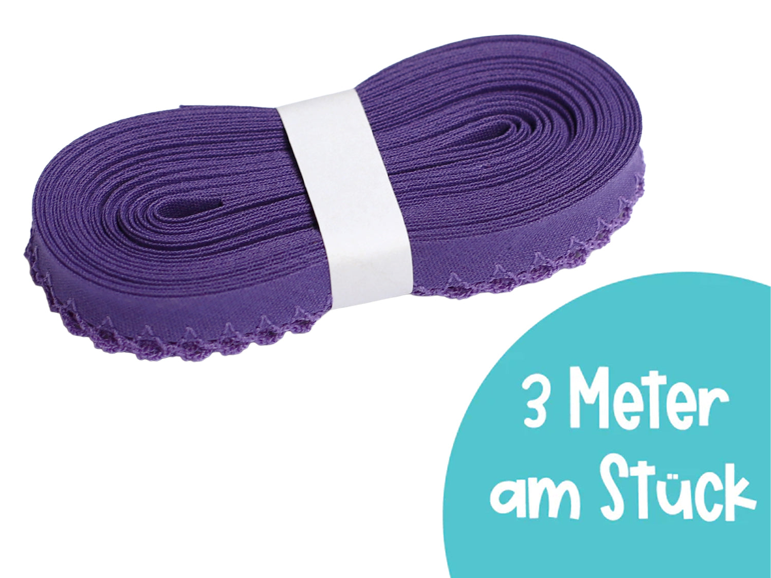 3m Schrägband mit Häkelborte - Uni - lila
