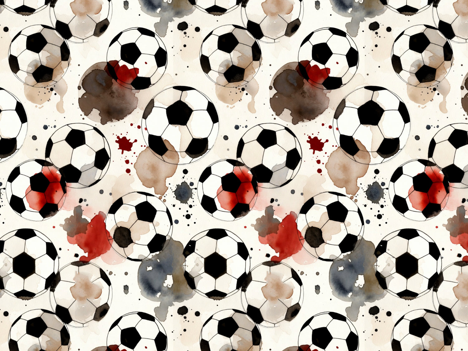Schöner Baumwolljersey mit Aquarell-Motiven von Fußbällen.