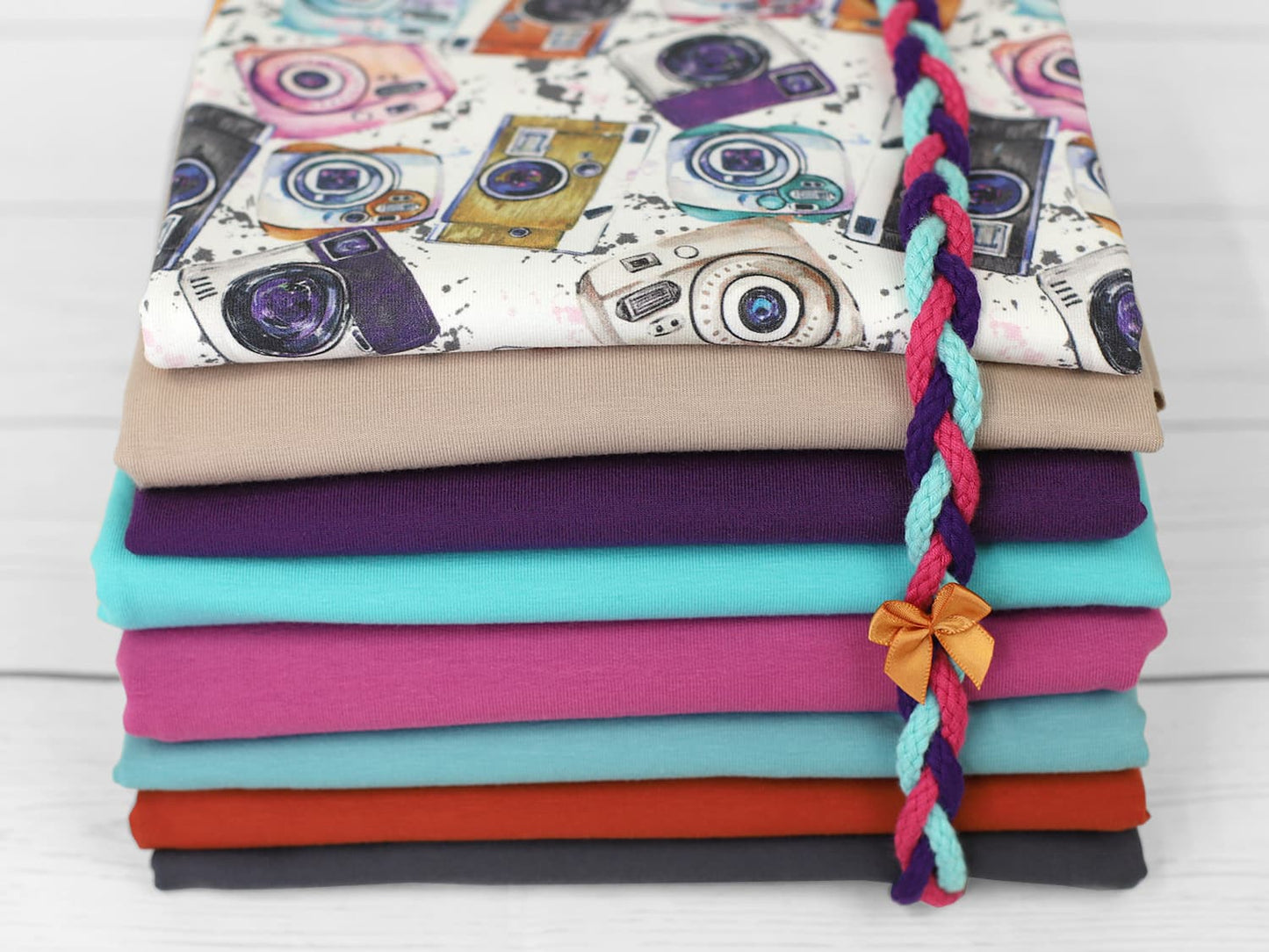 Jersey Stoff - Aquarell Kameras, bunt