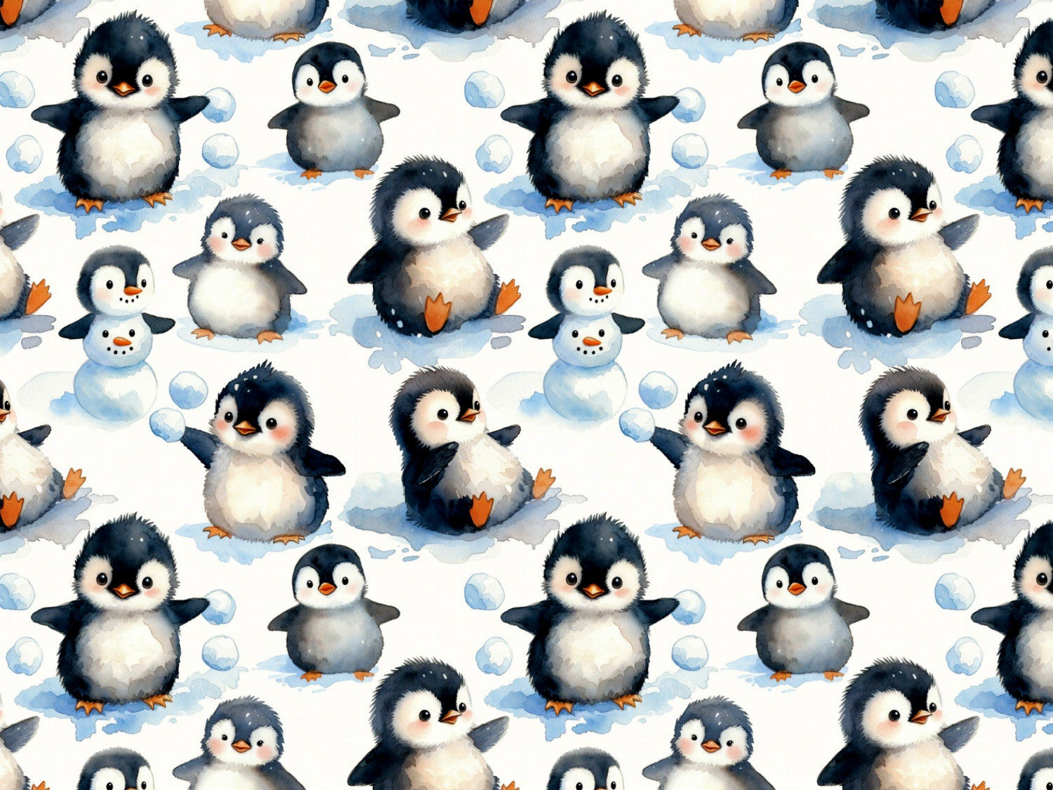 Schöner Baumwolljersey mit niedlichen Pinguinen im Schnee.
